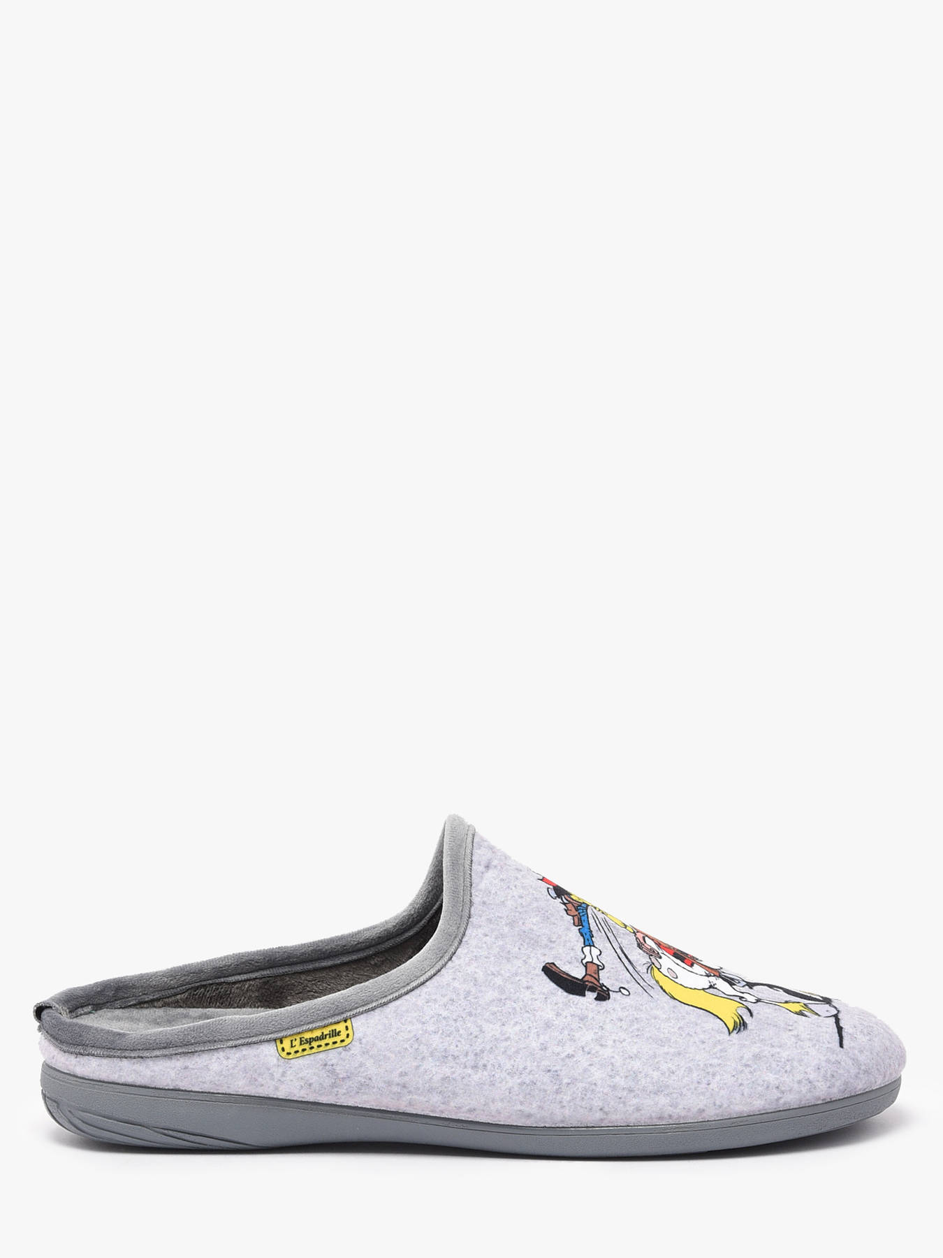 Plongez dans l’univers de Lucky Luke avec humour grâce aux chaussons LA MAISON DE L’ESPADRILLE, parfaits pour allier confort et style décalé à la maison. Leur dessus et doublure en textile assurent douceur et respirabilité, tandis que la semelle intérieure en textile, amovible, offre confort et praticité pour un usage quotidien. Ces chaussons apportent une touche ludique et originale à vos moments de détente, idéals pour les fans de l’iconique cow-boy. L’esprit fun et léger de Lucky Luke transforme vos instants cocooning en un moment plein de caractère et de bonne humeur. Faciles à enfiler et légers, ils conviennent à toutes les occasions de relaxation à la maison. Alliant confort, qualité et humour, ces chaussons LA MAISON DE L’ESPADRILLE deviennent un indispensable pour ceux qui veulent se détendre tout en affichant leur côté fan de Lucky Luke.