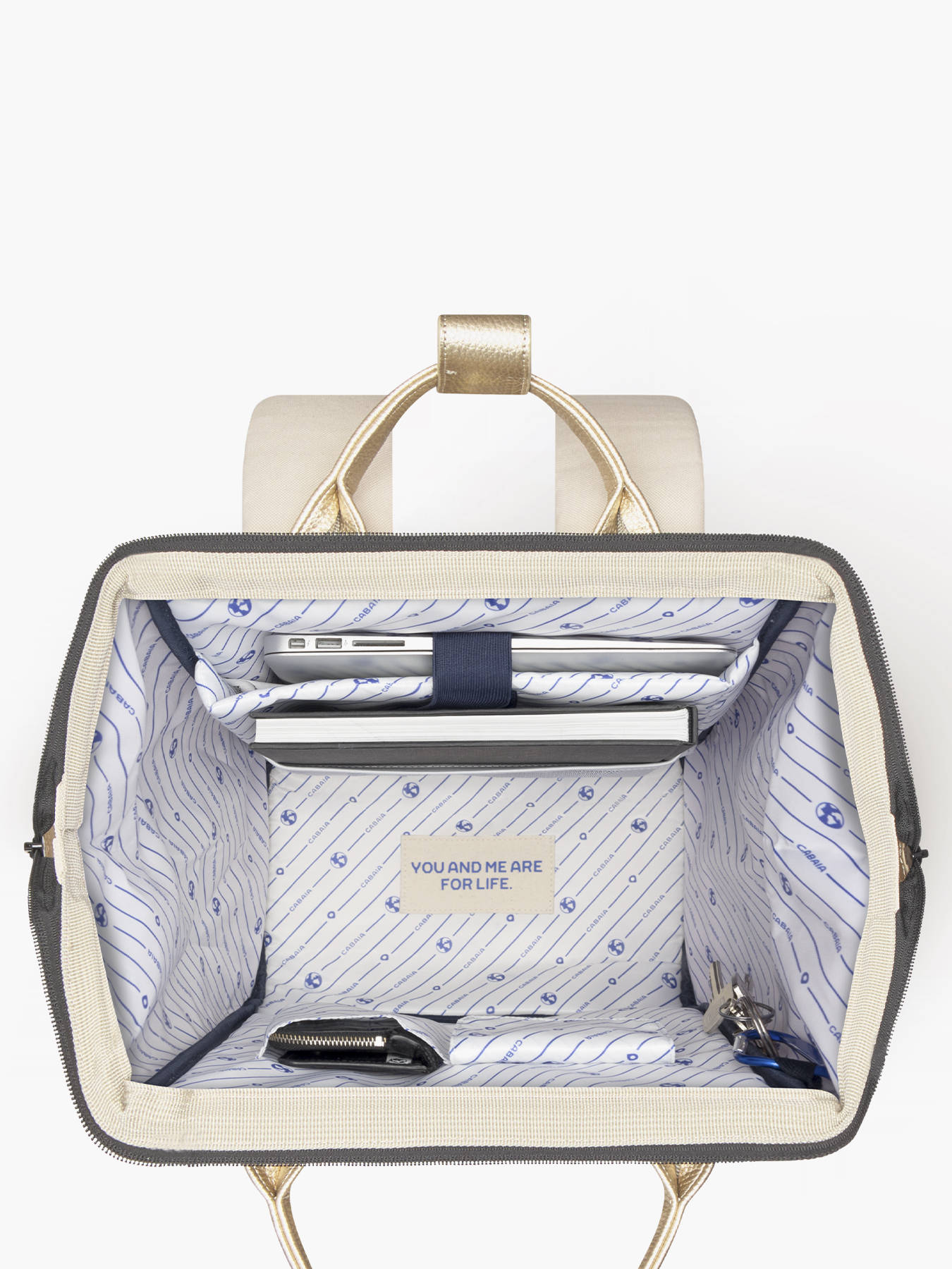 Ce sac à dos Cabaïa de la ligne Tour du Monde se porte sur le dos en utilisant les bretelles réglables ou à la main grâce à l'anse et peut s’accorder avec bon nombre de tenues.
