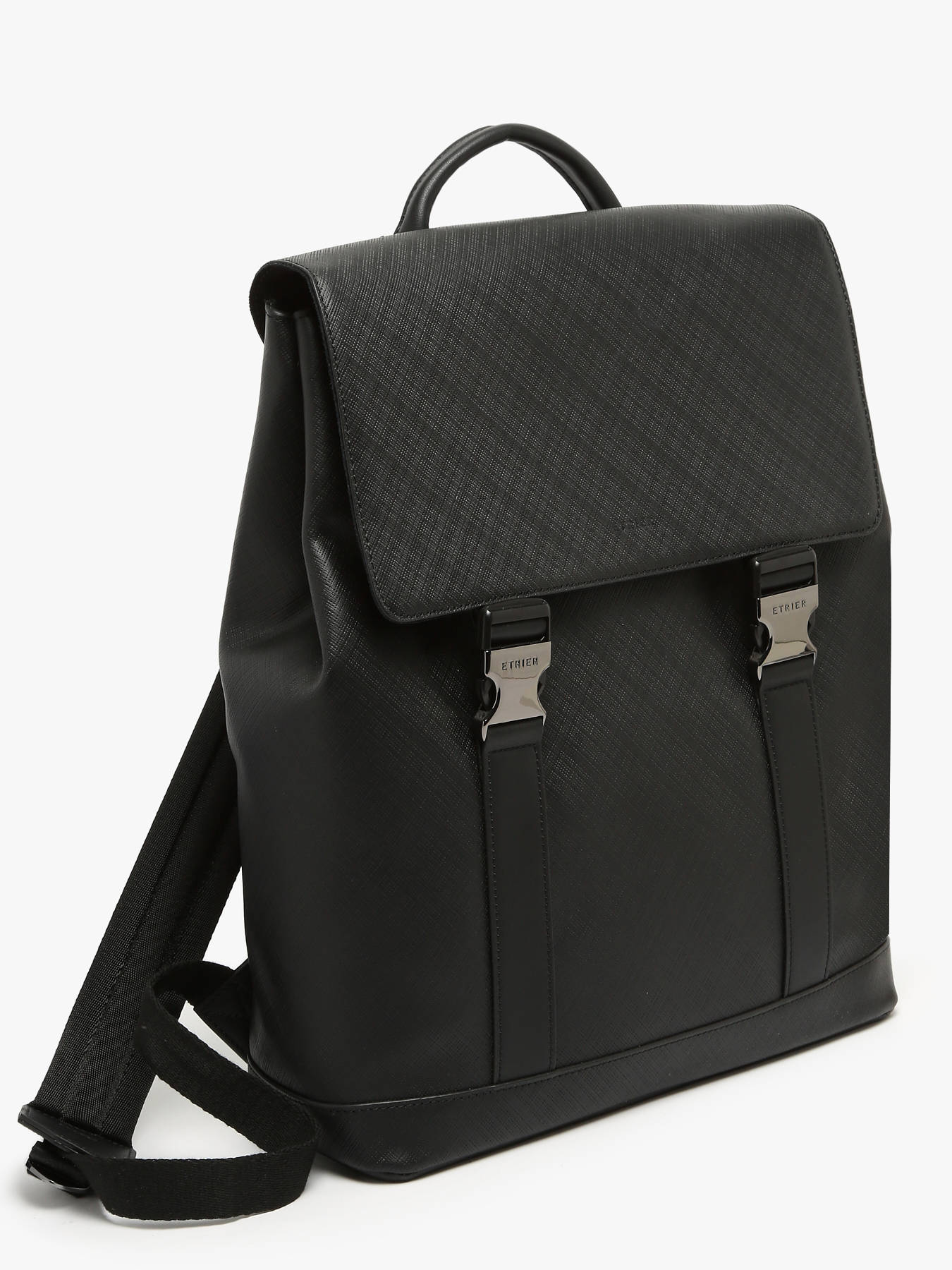 Ce sac à dos business de la ligne Flèche, en cuir texturé, allie élégance et praticité. Il présente un logo gravé sur les fermoirs et dispose d’un passant de poignée télescopique pour plus de confort. Avec sa poche au dos, son compartiment renforcé pour un ordinateur 15"" et ses bretelles réglables, il est conçu pour les professionnels. L'intérieur comprend deux poches simples ainsi qu'une poche éclair pour un rangement optimal.