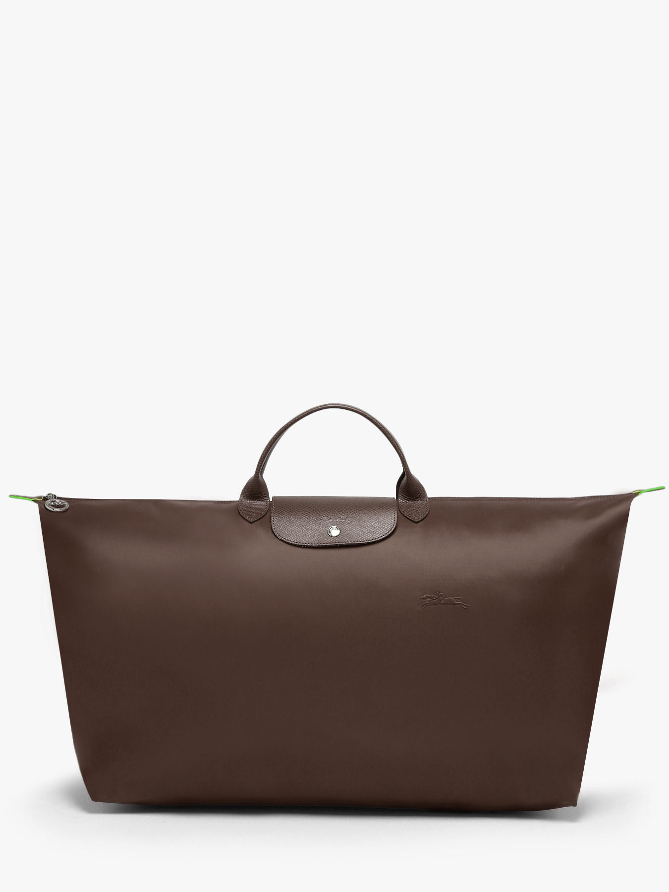 La fermeture de ce sac de voyage Le Pliage Green de chez Longchamp se fait à l'aide d'un zip. Vous pourrez le porter à la main grâce aux deux petites anses.